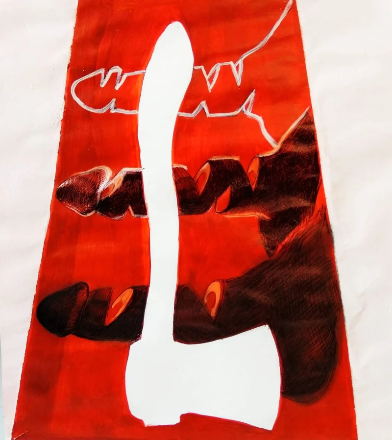 2020, The Holy Axe, Pen and Acrylic on Paper
